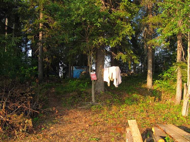 Шутки, разговоры, меж делом палатки ставим. Вроде и спать не хочется и силы откуда появляются. Ели могучие что ль поделились :)