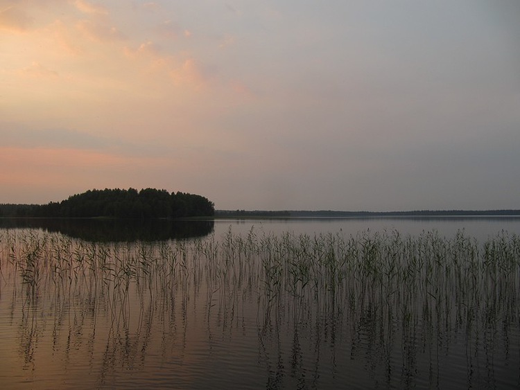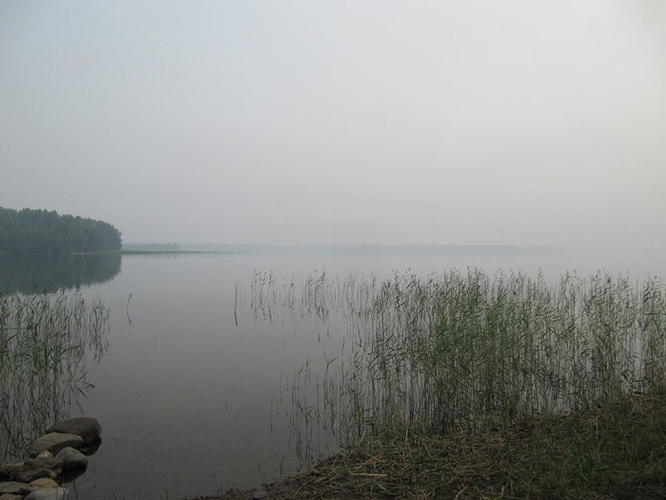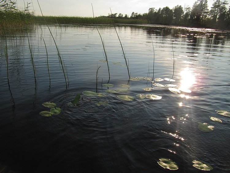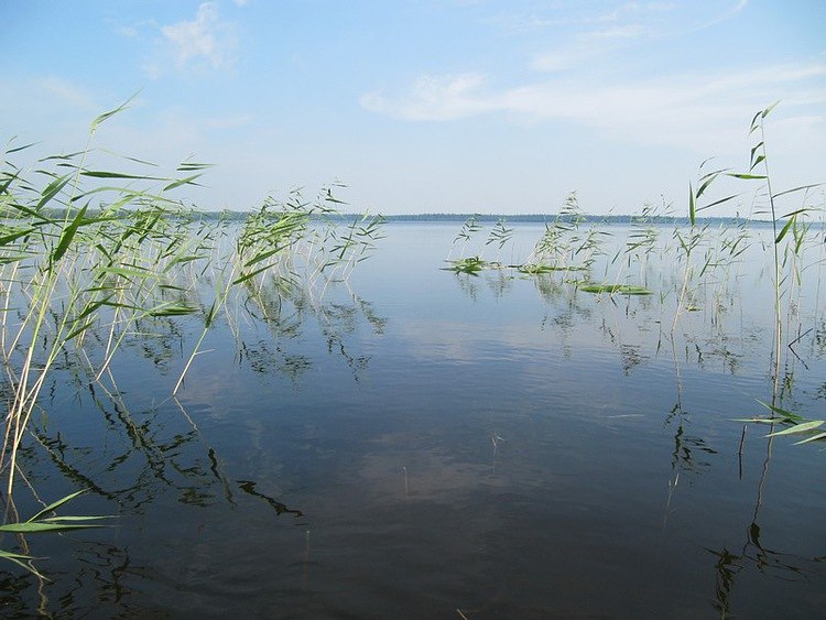 Озеро встретило плывущими мысами, вереницей-дорожкой камней, уводящих в воду