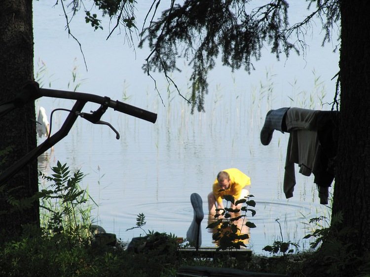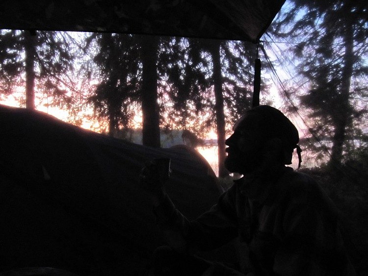 Наступила послеобеденная дрема. Солнце напалило тайгу, так, что высунуть нос из-под раскидистых елей ни у кого не возникало желания. Ребята разошлись по палаткам. Тож прикурнул чуток. Да не лежится под куполом. Выбрался на бережок. Пополдничал, чем мир послал.