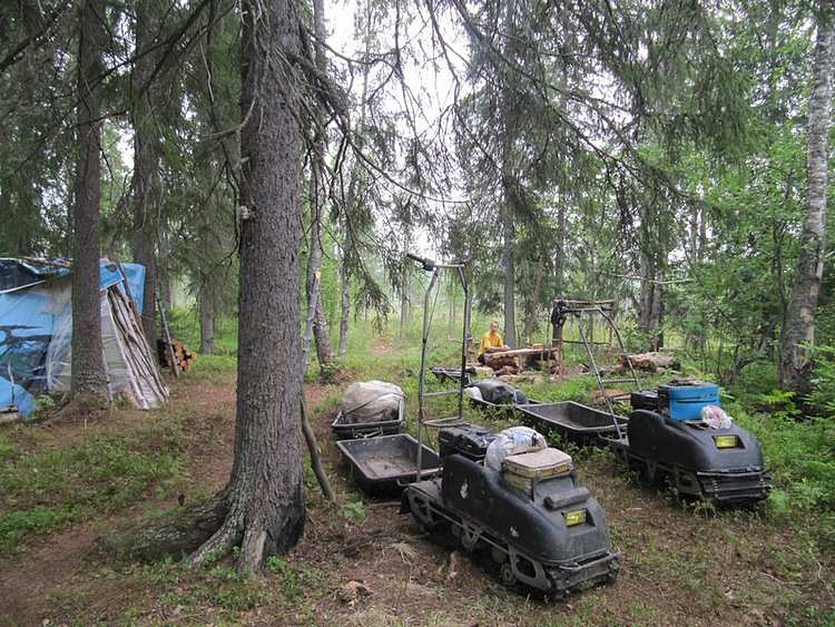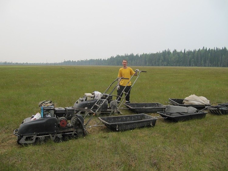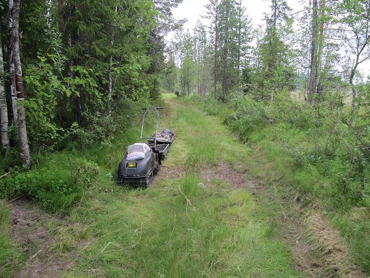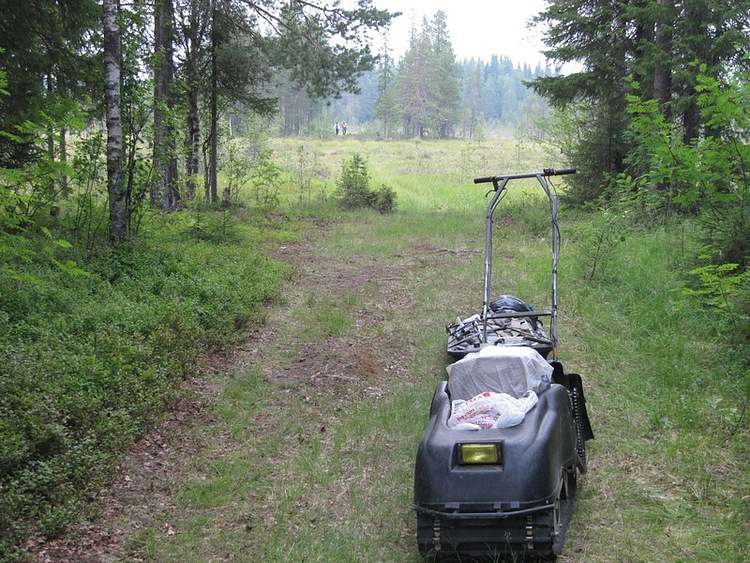 Первый отдых через два километра на болоте. Славик проходит боевое крещение. Первый раз на мотобуксировщике «Следопыте» едет. Мотодрайвером становится. Летом, оно тяжело. Да ничего, справится, коли чего сам помогу.