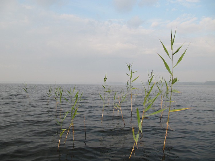 Треста жарким летом высоко поднялась, меня полностью скрывает. Хорошо спиннинг длинный, можно поверх закидывать.