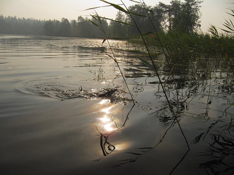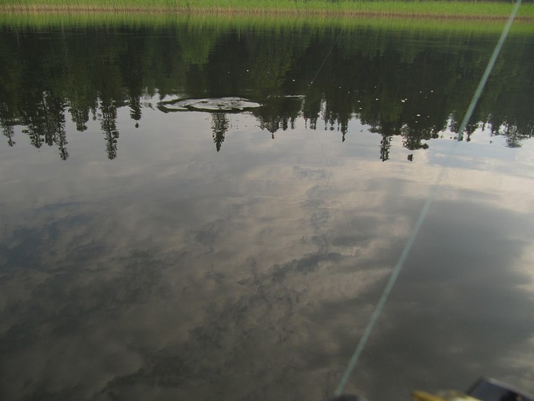 Увязались за блесной несколько листочков, зацепившись за тройник. Мотаю быстрее, чтобы очистить крючок да перебросить. Щука среагировала на приближение вращалки, повернулась в её сторону. Пропустила. Отошла подальше от меня. Махнул второй раз удилищем, да куда-то не туда блесна улетела. Что за напастие. Щука, почувствовав мою несостоятельность, вильнула хвостом да скрылась в зеленоватой глубине водоема. Эх! Ма! Проспал.