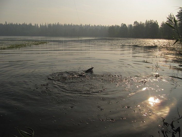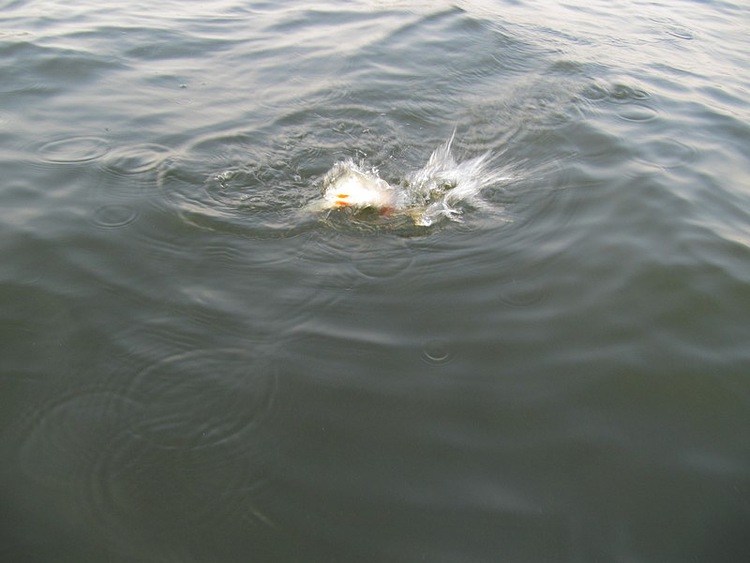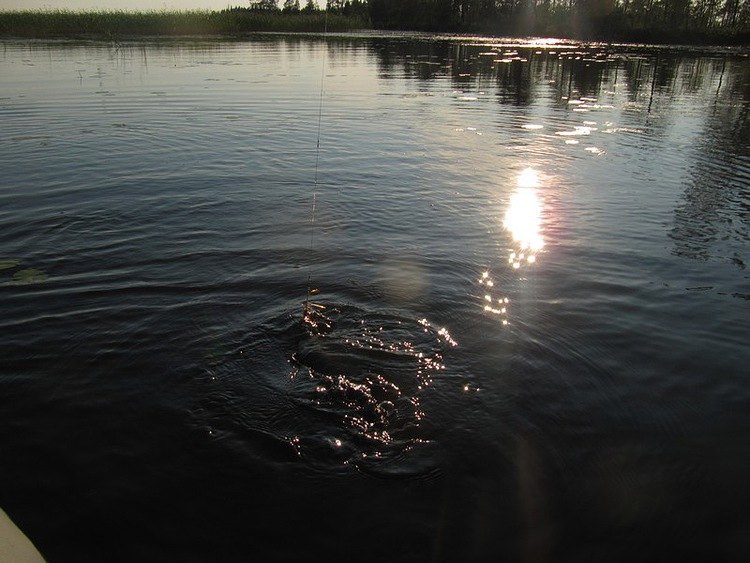 До лодки совсем рядом. Мощный всплеск, рыба даже не появлялась, просто над водой буруны пошли и фонтаном вода взлетела, треск фрикциона и ослабевшая нить. Увы, ни в этот раз.