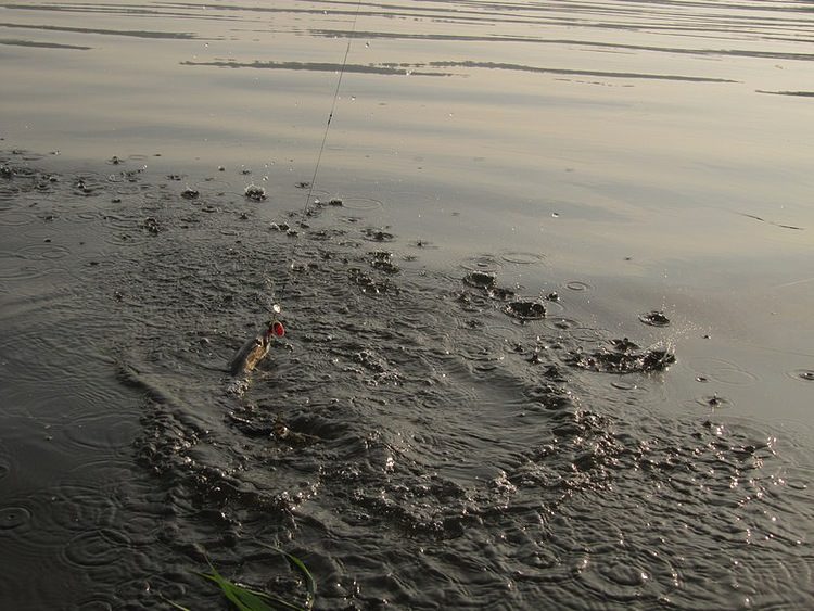 Приподнимаю голову щуки над водой, чтоб подзаснула побыстрей