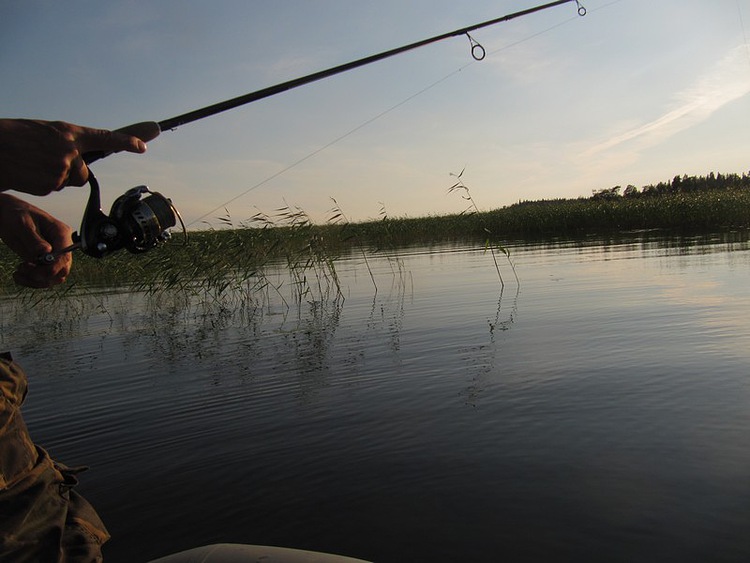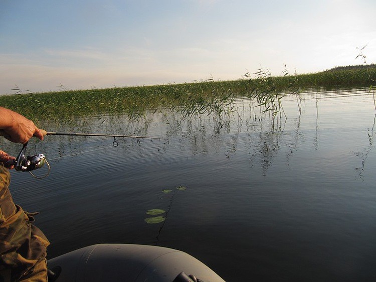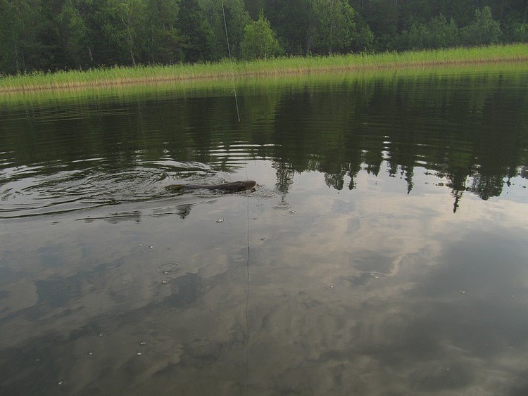 Начинаю подводить к себе. Рыба ж уходит в сторону берега, по дуге обходя лодку