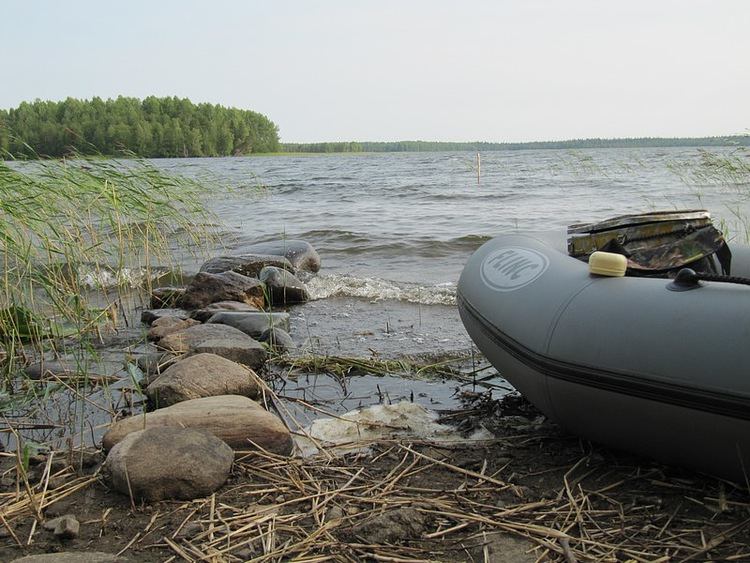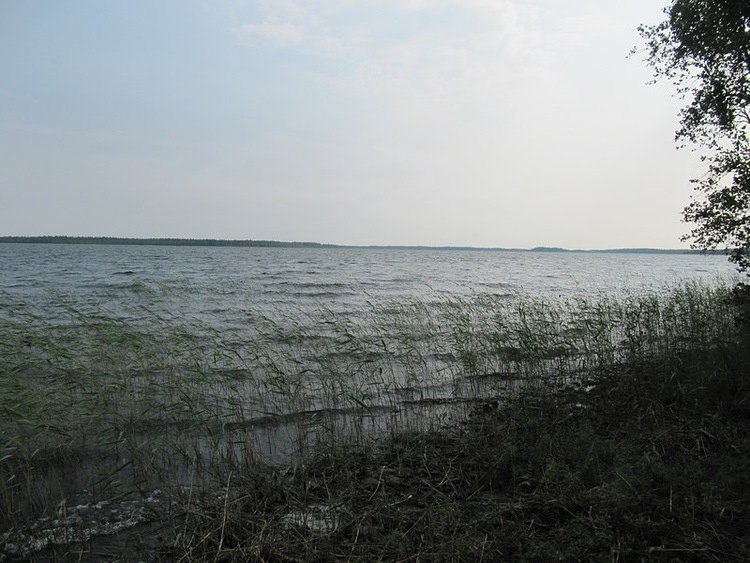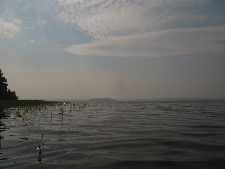 База далеко, далеко на горизонте, лодок не видать, мало стало её народу посещать. Раньше рассказывали только по десятку лодок на воде бывало. Сейчас одну-две увидишь, и то хорошо.