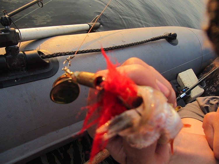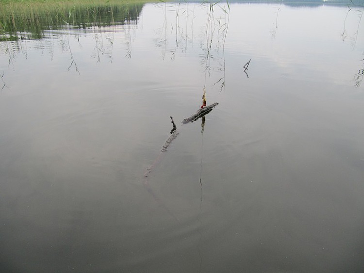 За бортом упруго трепещется на плетне колебалка НЕРКА AQUA FIRE. Первая поклёвка, мощный зацеп. Возвращаемся, отцепляем. Блесна спасена, коряжка свободна:)