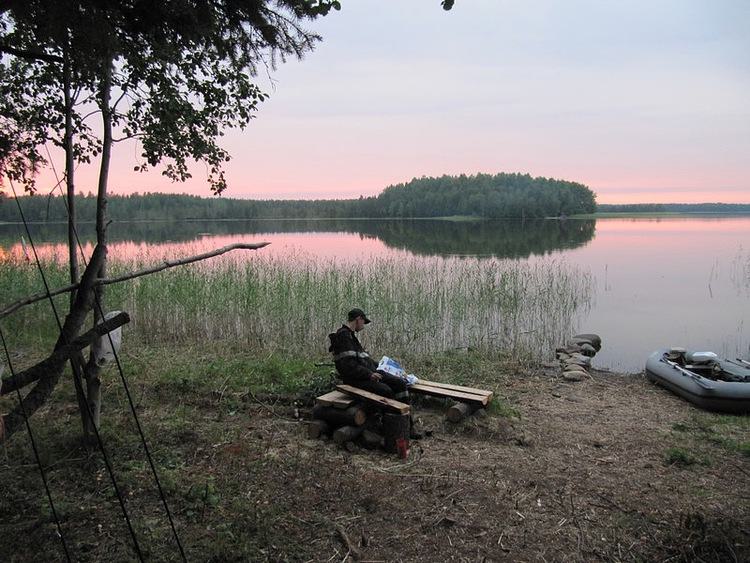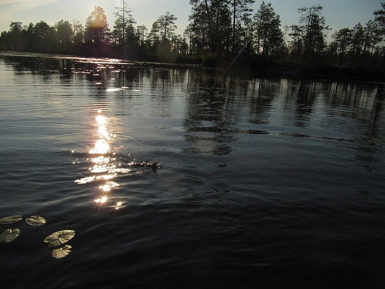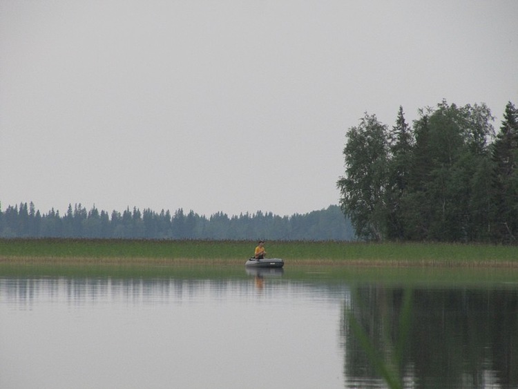 У меня сегодня крайний день рыбалки. Завтра собирать ягоды буду. Слава же хочет с утра со спином отметиться. Поэтому не выдерживаю и с согласия напарника, плыву поспиннинговать чутка в нашем заливчике, рядом со стоянкой.