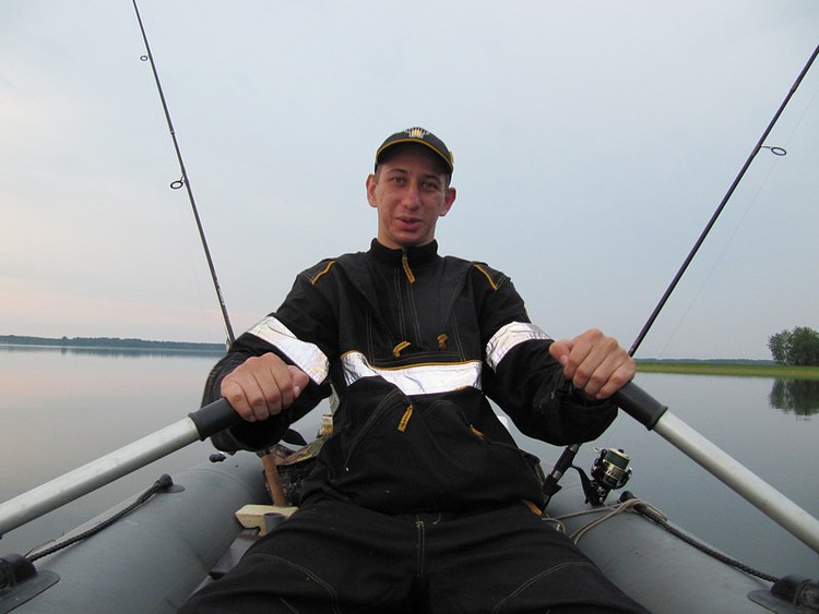 Сегодня обленился и лезть в воду неохота. Ловим со Славой вдвоем с лодки. Один на вёслах выставляет лодку в положение удобное для заброса, второй ловит. Вначале осваивались, приноравливались, потом дело пошло. Удобно, с берега так не получится. Да и одному в лодке тоже не ахти, только выйдешь в нужную точку, тут же ветром начинает сносить.