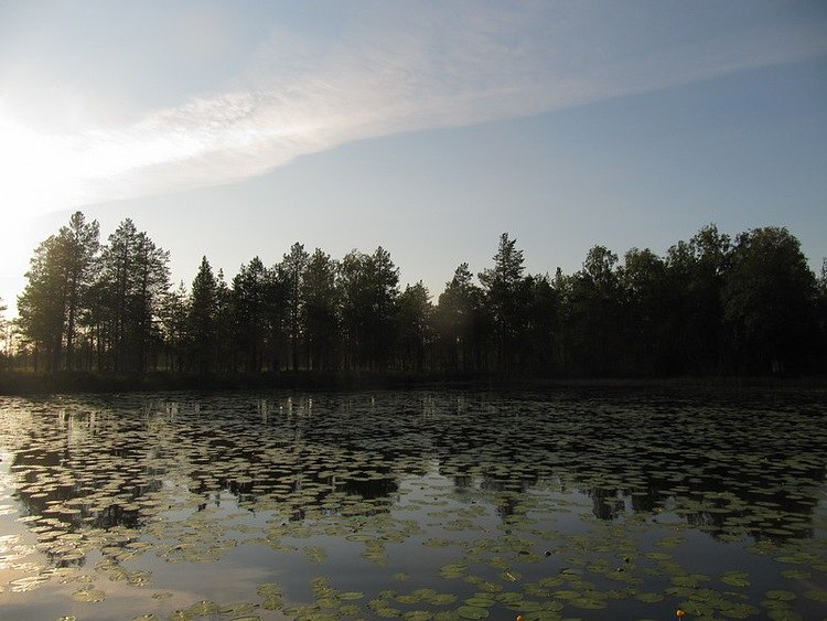 Чем ближе к истоку реки Ижмы, тем кувшинка плотнее стоит. Еле, еле место находим, куда заброс сделать.