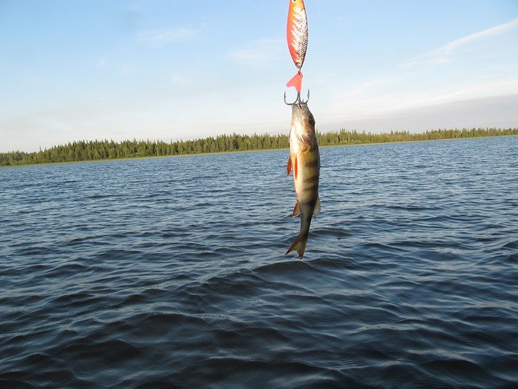 Теперь же с новым спином с первого заброса окунек.