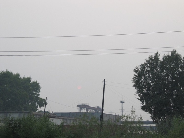 И над городом смок висит. Солнце еле угадывается на небе.