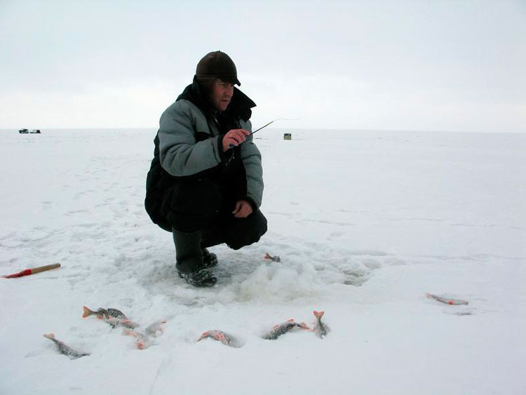 Бегу по трещине – пустые лунки. Тычок в очередной. Пару штук уговариваю. Чудом. В смысле балансиром. :) И техникой ловли, конечно. Такой окунь тоже интересен, как раз для оттачивания владения снастью.