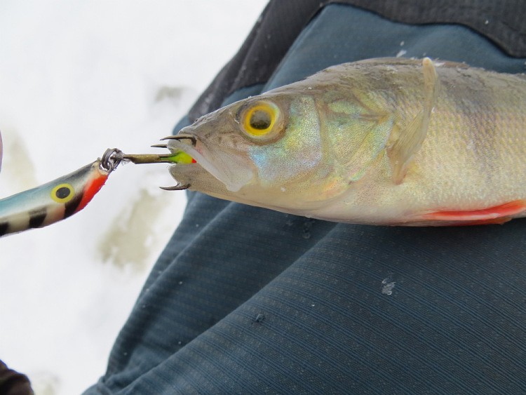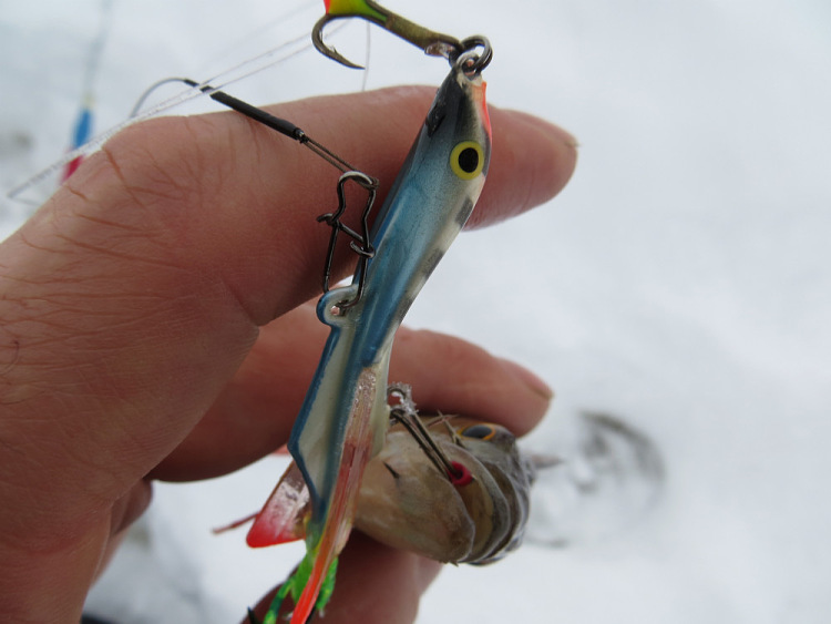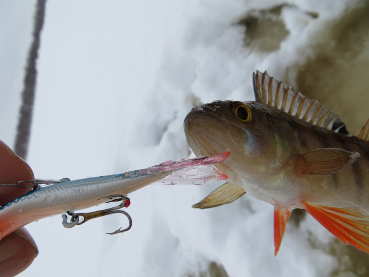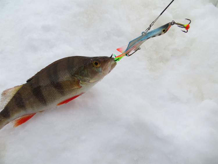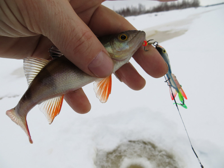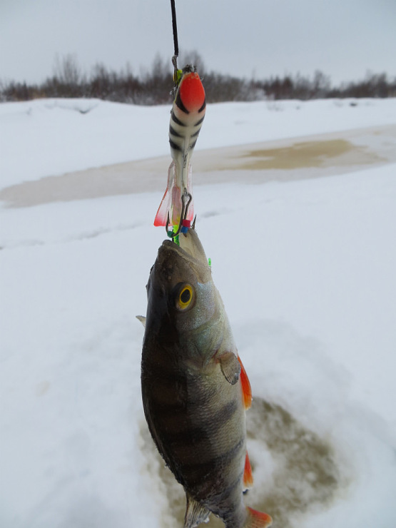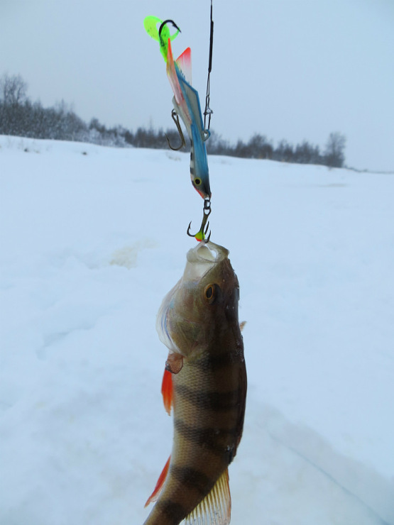 Практически все цвета балансира повторяются в окушке, кроме синего. К сожалению, синеватых рыбок сегодня не попалось. Может поменять цветовую раскраску.
