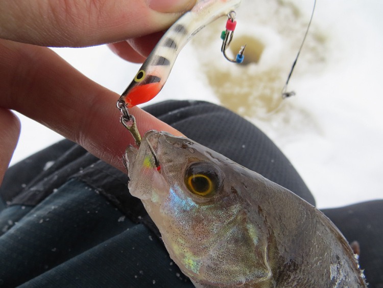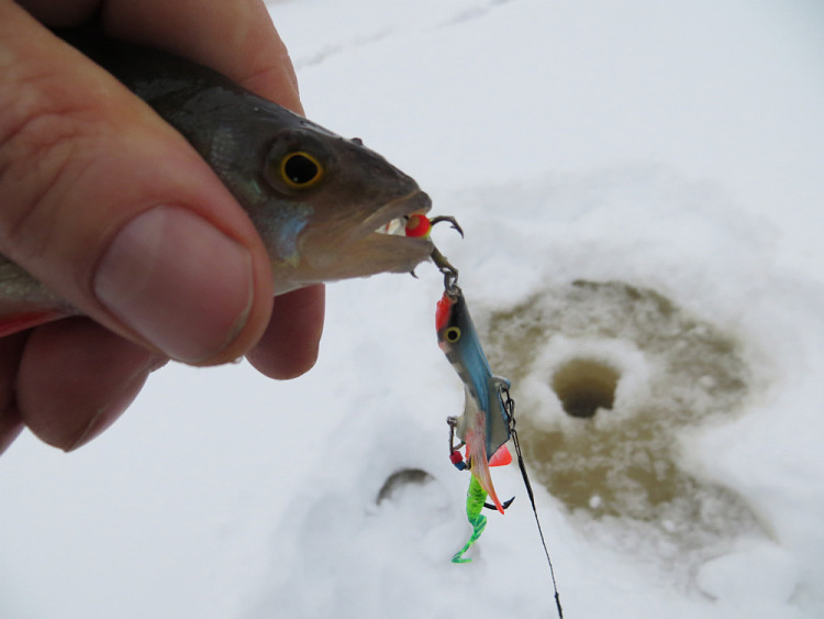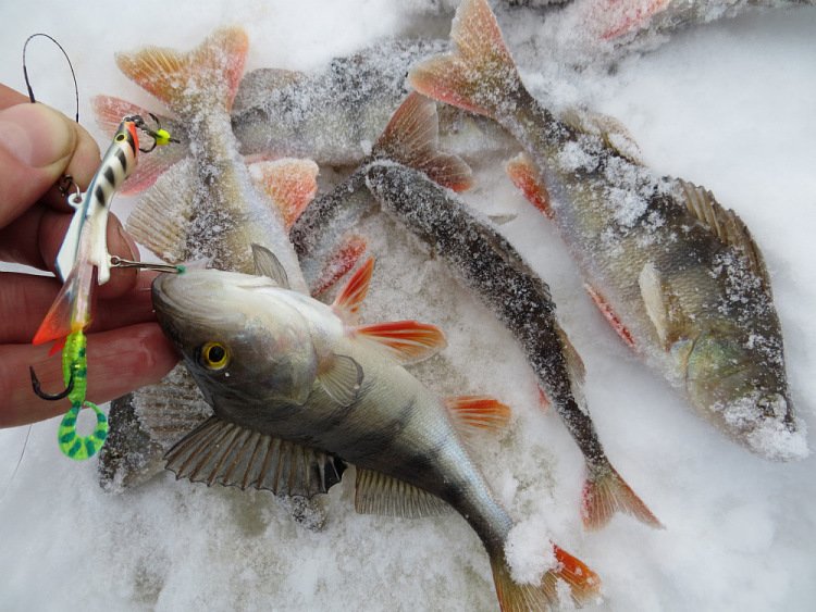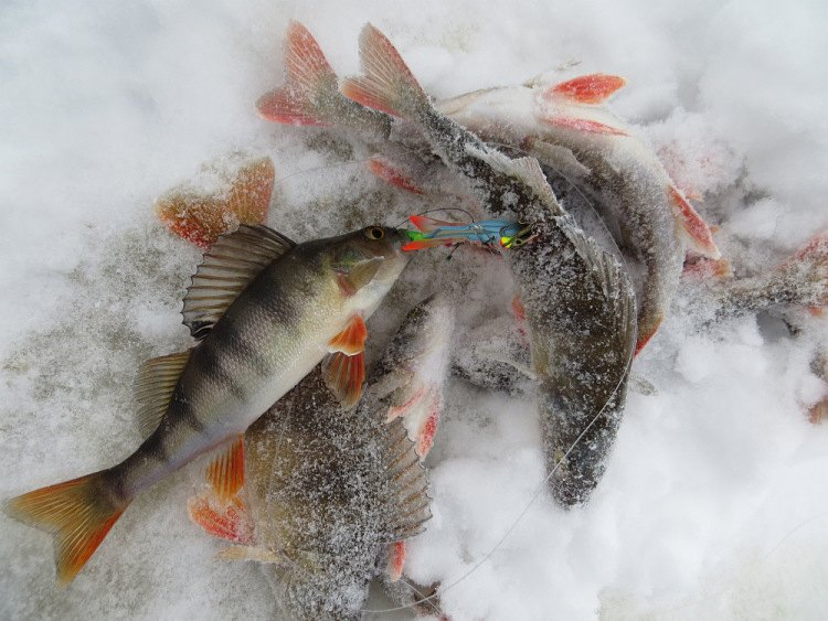 Хороший результат дает ловля втроём. В этом случае правильное бурение и перемещение рыбацкого товарищества практически всегда позволяет уследить направление движении основного ядра окуневой стаи.