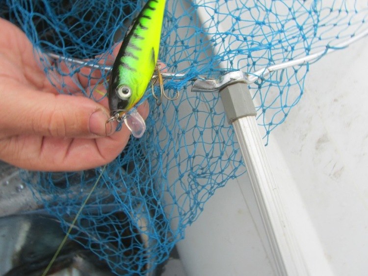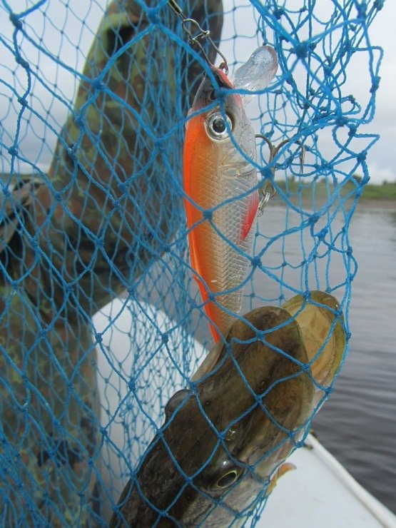 После замены нескольких воблеров, мало верю в удачу. И вдруг остановка. Вначале показалось, что зацеп, потом резко отдало. Рыба последовала за кончиком спиннинга. С трудом веду к лодке.