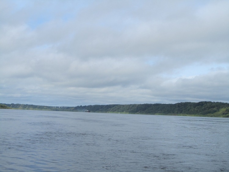Вырываемся с напарником Михаилом из лап по рабочему гудящего города, обходим по Объездной, и по знакомой десятки лет трассе уносимся в сторону Пинежья. Через 70 км потрепанной дождями отсыпки сворачиваем к Северной Двине. Помнится, был подъезд по бетонным плитам прямо к воде. Увы, плит нет, на спуске образовалась ступенька с ледохода. Так её никто и не сравнял, хотя именно тут находится переправа на ближайший островной поселок. Как люди туда попадают, загадка.