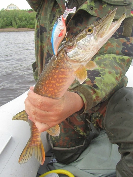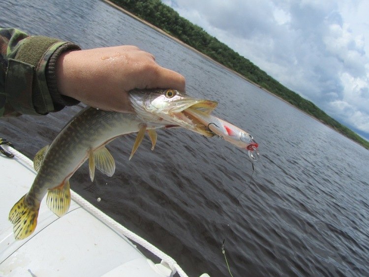 Моторчик весело затарахтел, упруго толкая северные воды назад. Приманки запущены за борт. Сегодня тестируем новые воблеры. Глубина проходки выбрана не случайно два метра. Еще в прошлые разы мне показалась, что рыба стоит мельче. Вода в реке так и не прогрелась, и рыба, даже крупная предпочитает кормиться на мелях, не говоря уж о мелочи.