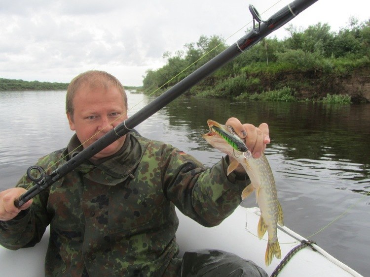 Шикарно, небыстрая проводка по течению на глубине двух метров и первая щучья поклевка есть