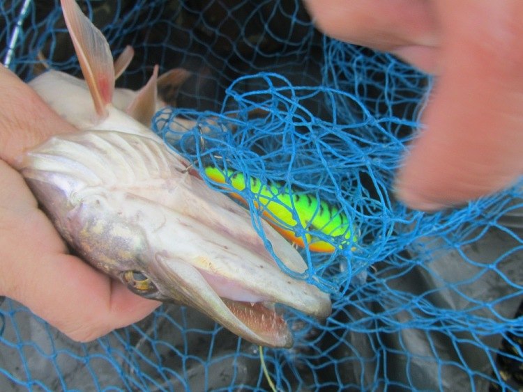 По хватке видно, что щука догоняла приманку, поднимаясь со дна