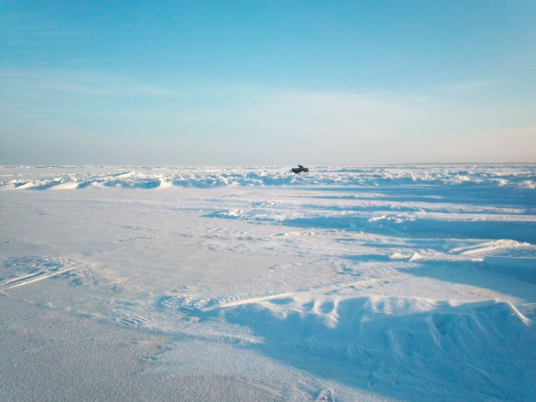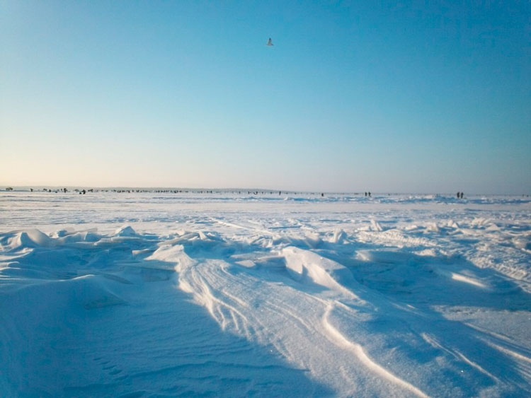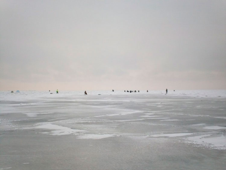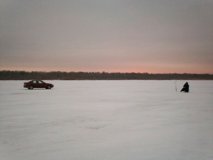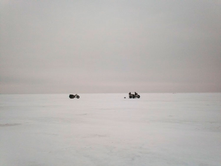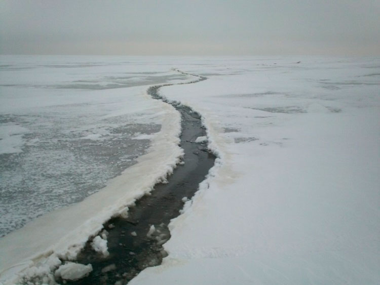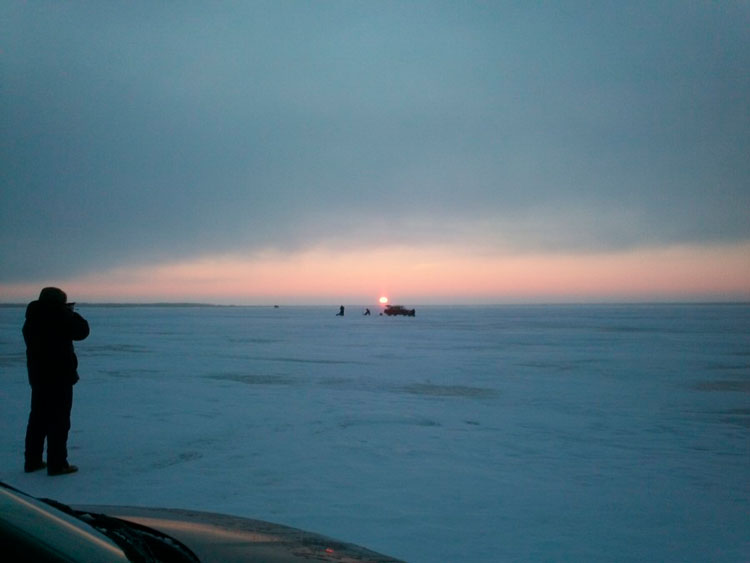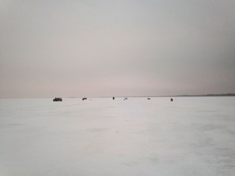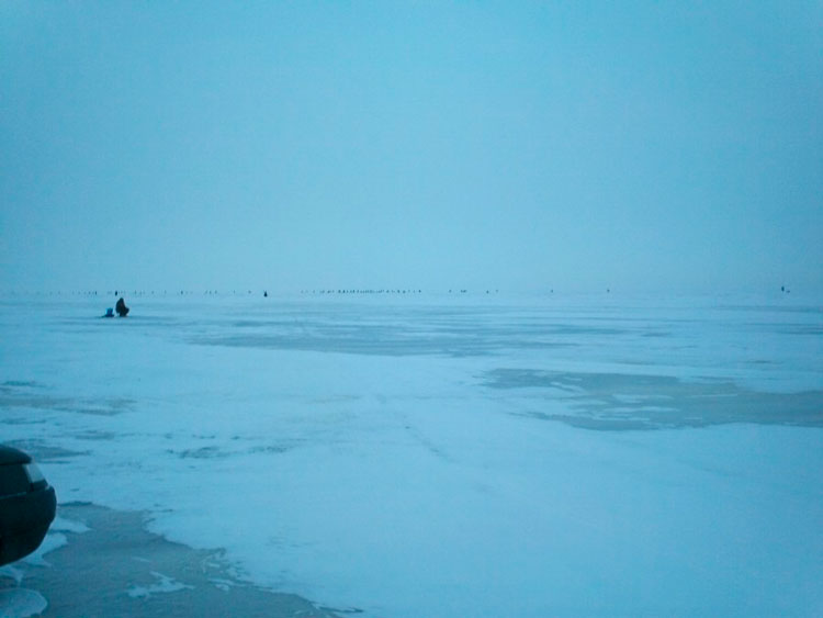 С нулевым, впрочем результатом. Решили переехать вдоль ледового разлома туда, где собралась основная масса автомобилей.