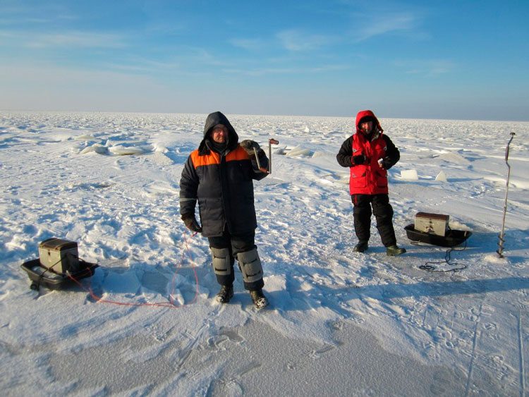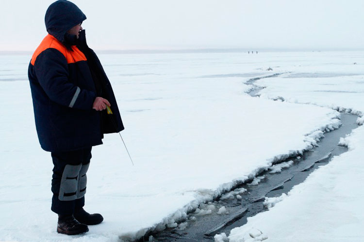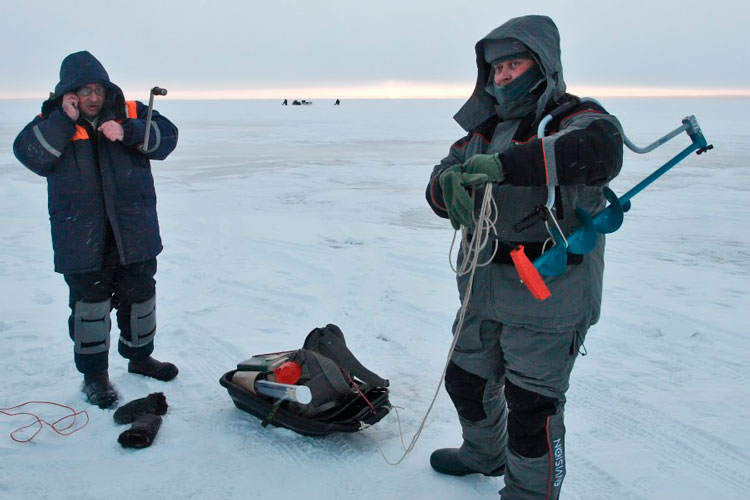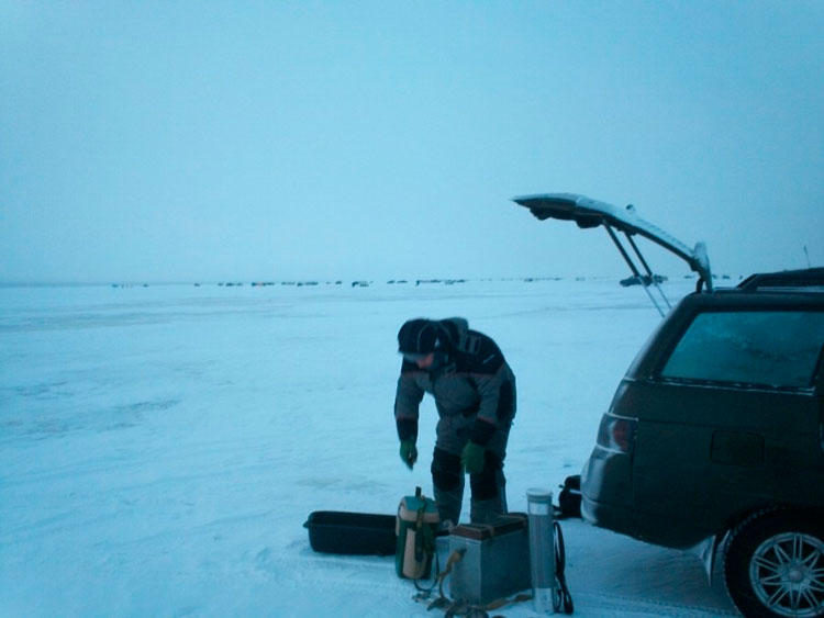 И ходом перескочил её. Выскочив из автомобиля и оценив обстановку, поступили единственно правильно - Андрей развернулся, сделал небольшой круг для разгона, и препрыгнул трещину назад. Выйдя из машины, разложив ледобур, я попробовал толщину льда. На береговой стороне трещины она была вполне достойной - около полуметра, а вот с другой стороны лёд был всего десять - двенадцать сантиметров! Да, как говорится - Бог миловал!