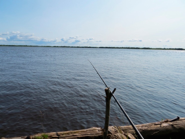 Заброс. Вода повернула на прибыль. Тишина. Клёв, как неожиданно начавшись, так и прекратился. Посиживаю на стульчике, любуюсь небом, да узорами волн на воде.