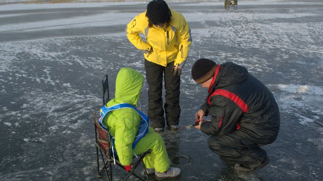 Вот и приходится сидеть над каждой лункой и ждать свою золотую рыбку…а может и правда клюнет? В этот раз решили использовать только ручные ледобуры, вместо мотобуров. Всё своими руками! И взрослые всегда на подмоге.