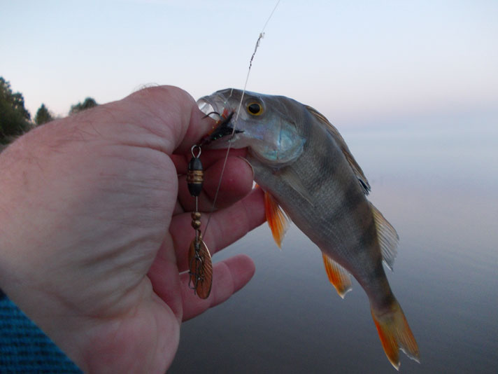 Ну а где есть место мелководным минноу, там уж никак не обойдётся без топвотеров. И тут, что в принципе закономерно, "Декстер" справляется легко и непринуждённо. Как с уокерами, мелкими окунёвыми. |