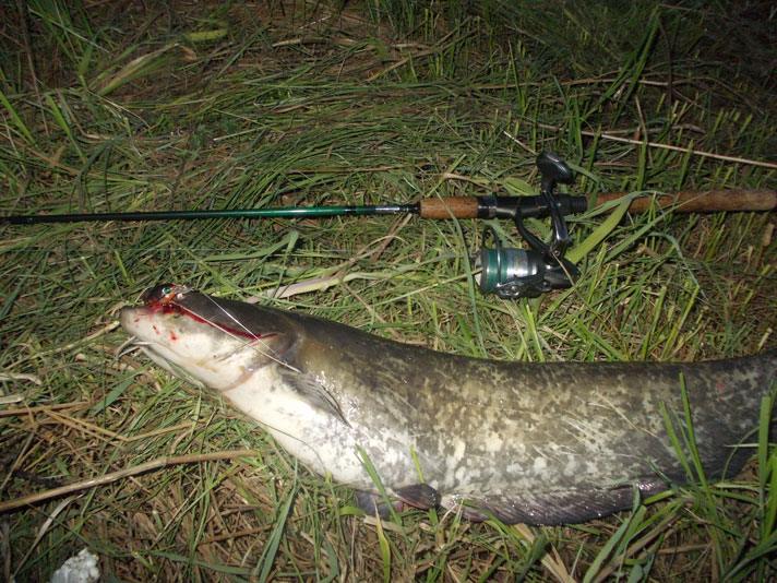 И вроде ещё малёк, по сомовьим меркам, но для лёгкой снасти, какой "Декстер" 3-15гр и является, это был настоящий трофей! Бой он дал замечательный! Но бланк "Декстера" вкупе с хорошо работающим фрикционом двухтысячного "Квеста" не позволили сомику ни сойти, ни оборвать тоненький, 0.1 мм, шнур...