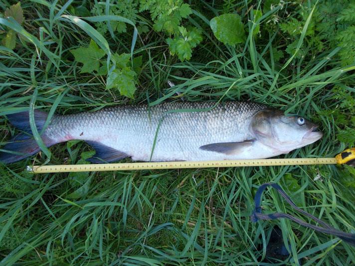 и главный, на мой взгляд, его трофей - самый сильный боец наших вод - жерех длиной 65 см и весом более четырёх килограмм. |
