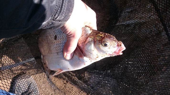 Когда поменяли тесто на обычные кукурузные хлопья для детей, подлещик перестал осторожничать и, наконец, заставил хлыст фидера раскачиваться из стороны в сторону. |