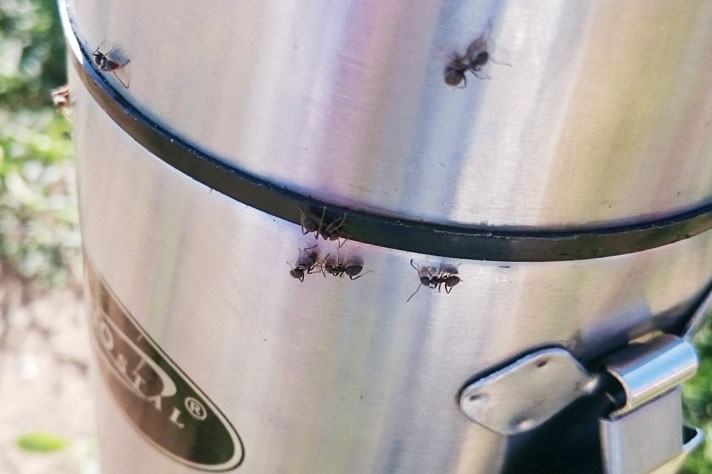 Пока я ходил по берегу, муравьи покусились на наш обед, но в термос пробраться им так и не удалось. |