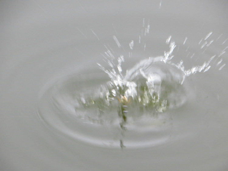 Карасик проворно ныряет в глубь прудка, брызгает, куралесит в стороны.