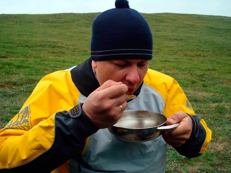 Пока парни переодеваются, собирают витамин к ужину(дикий лук), быстренько готовлю ушицу и под добрый дружеский тост...ужинаем.