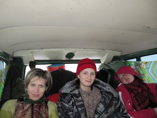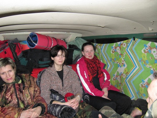 И, похоже, сырой снег и дождь за бортом её совсем не волнует. Эх! Как классно, что мы вместе едем в поход, сынулю, наконец, удалось пристроить с тещёй на три дня.