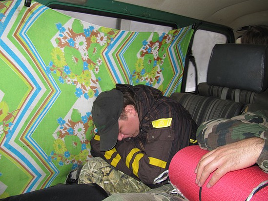 О! Леха уже задремал. Он, оказывается, всю ночь собирался, так и не соснул.