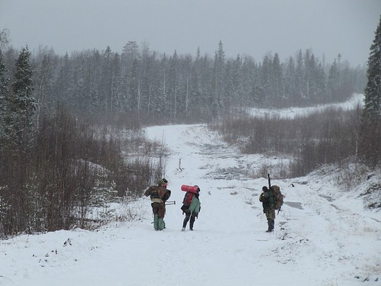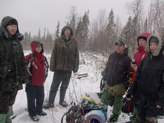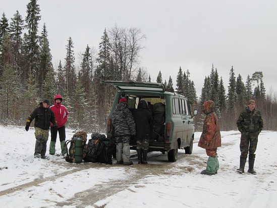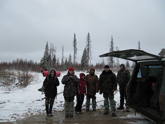 Половина восьмого утра. Наша честная команда выгружается напротив зимника. Рома выполнил свою Супер миссию, не смотря на убитую дорогу, или точнее на отсутствие её, доставил наши тела в целостности и сохранности до старта на пешку.