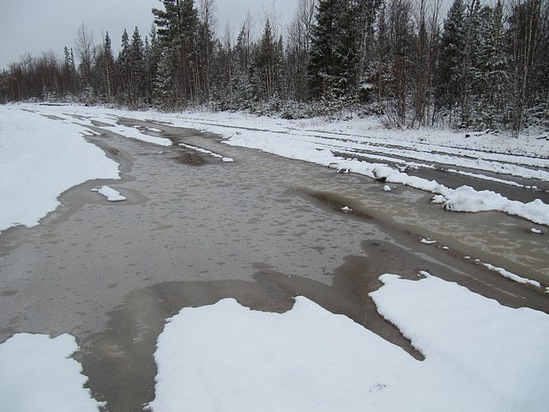 Дальше почти 60 км то ли бетонки, то ли глины. Какое состояние отсыпки вряд ли кто толком сможет рассказать. Погода меняется каждый день, то тает, то морозит, то дождь льет.