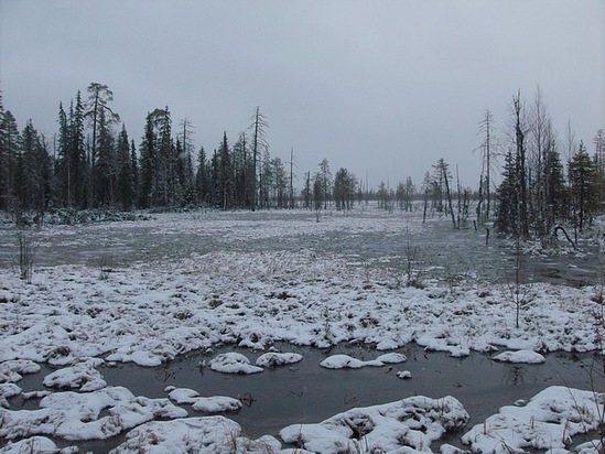 Маршрут проложили так, чтобы болота миновать стороной. На них сейчас изрядно можно наплюхаться. В некоторых местах над мохом озерины образовались.