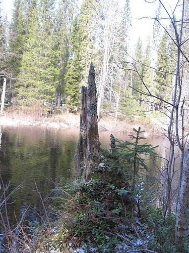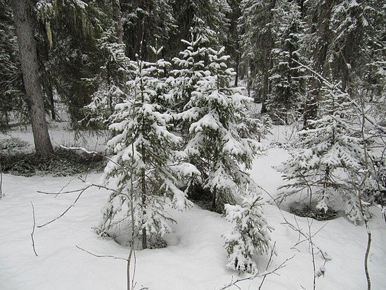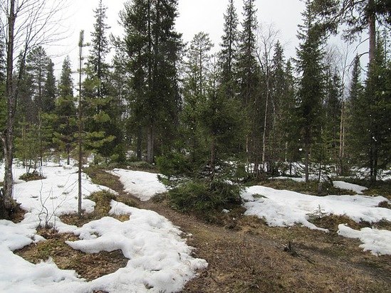 К половине десятого добрались до отворотки на лесную тропу. Сразу и не узнал место. До чего лесорубы пейзаж изменили, да и снег стаял. Так по небольшим приметам всё ж определился, что и как. Нашёл холм. Вокруг него сделал круг по болоту и выбрел на тропку. Теперь с удовольствием погрузился в тайгу. Она рядом, можно рукой достать. Лишь протяни.
