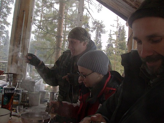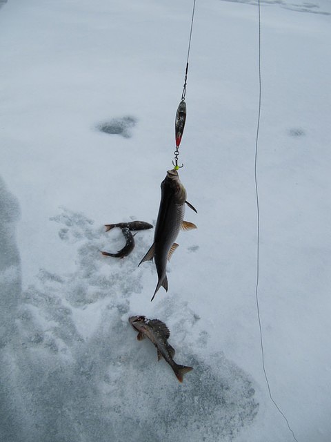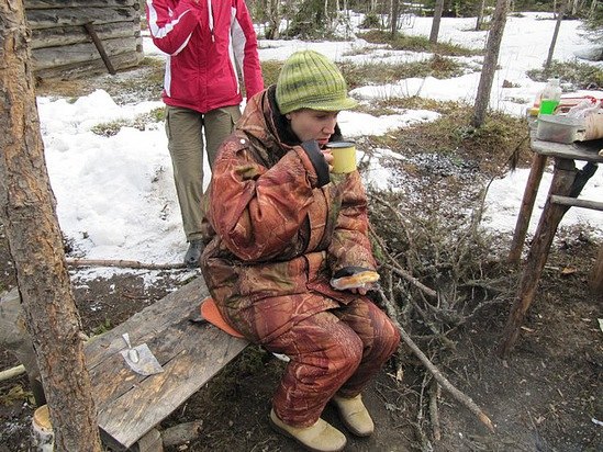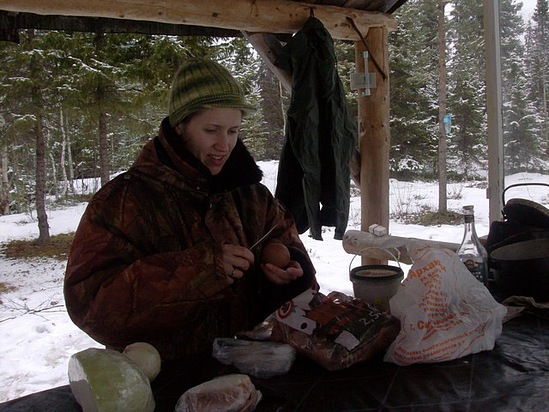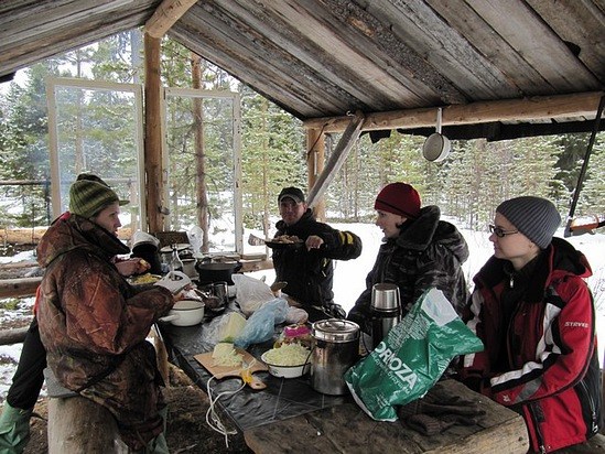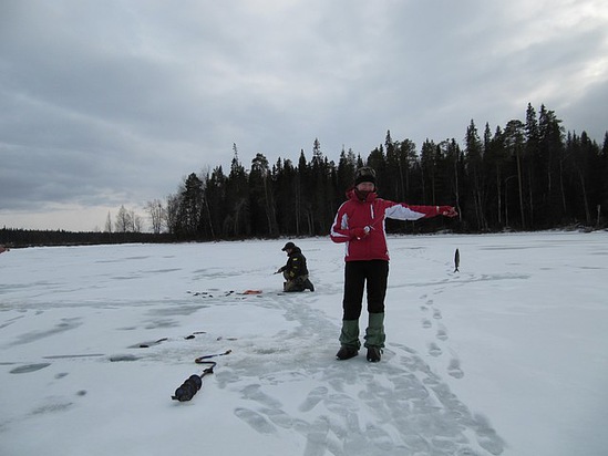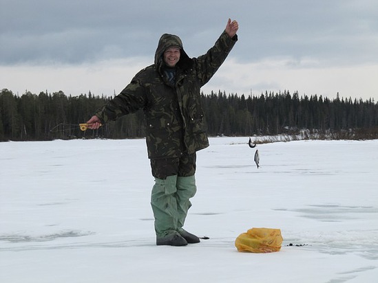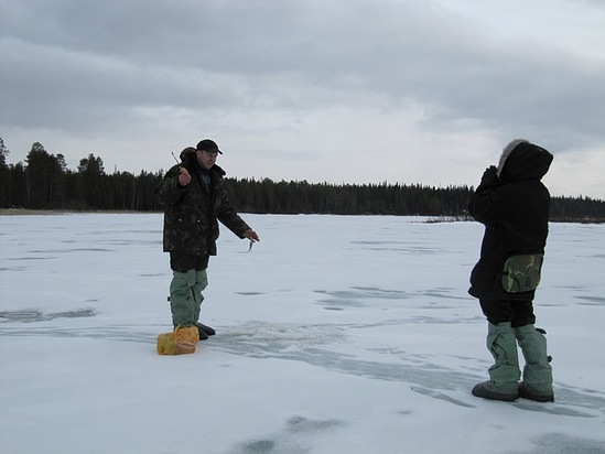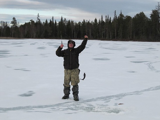 Толик с Катей сходили на Золотое озеро на рыбалку. Ветер сумашедший. Еле удавалось на ногах стоять. Окунь же с сорогой пируэтов природы не замечал и долбил отменно. Замёрзшие и довольные вернулись к избушке. Увидев замерзших ребят, больше никто желание на рыбалку пойти не изъявил. Ухи все наелись, домой рыбы наловили, сколь унести могли.