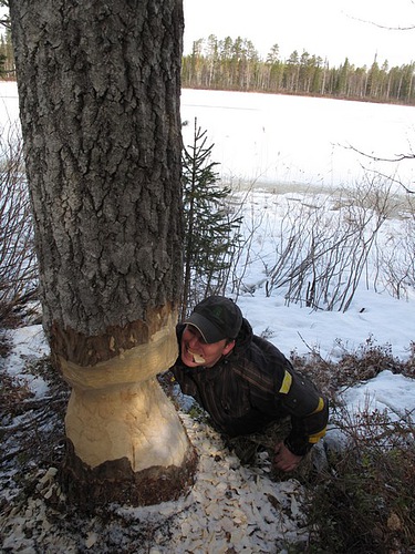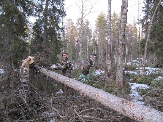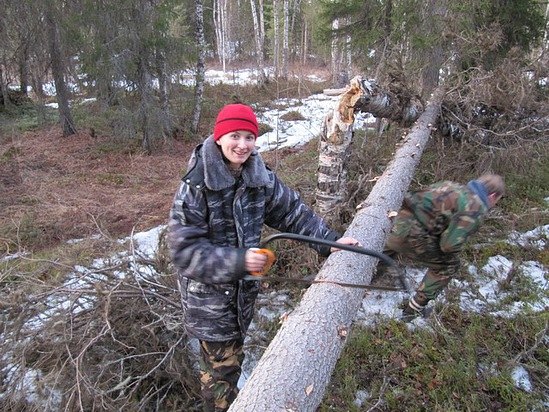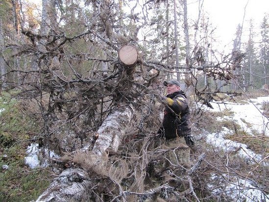 Иду, в шутку народ смешу, лесины, мол, какие валю. Ель обхватываю. Северный медведь :)))