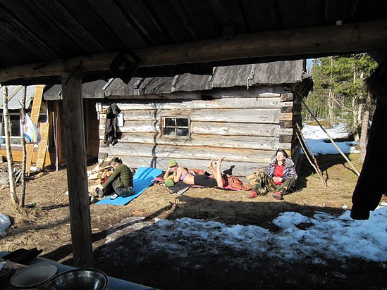 Да кто на рыбалку подался, кто у избушки досыпать остался.