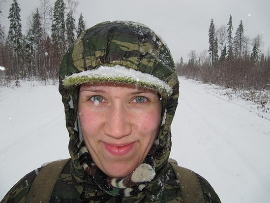 Постепенно колонна растягивается. Лидеры, те, что с походов не вылазют, определяются. На пятки мне наступает Наталья. Ох, не догонишь :)