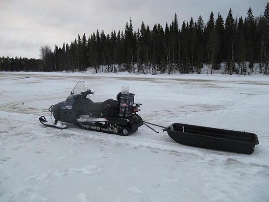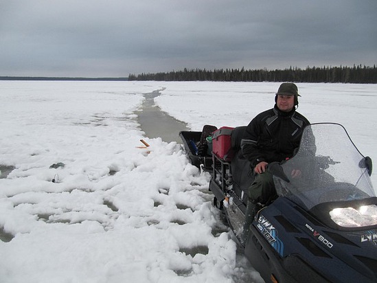 По пути вытаивают разные подозрительные детали фюзеляжа :) Теперь мы с Сашей больше похожи на эквилибристов, постоянно перескакиваем со стороны на сторону снегохода, вывешиваемся, выравниваем его на зимнике. Как выровняется, мнет снег изумительно, как немного закосил, и уходит в бездну, падая на бок. Успели на ходу вывеситься на другой борт, выравнивается. Не успели, остановились, повисли, как виноградины с противоположной стороны. Немного газу, снегоход спасен от опрокидывания, встает ровно. Вновь садимся и вперёд, до очередного хитроумного крена и нашего молниеносного