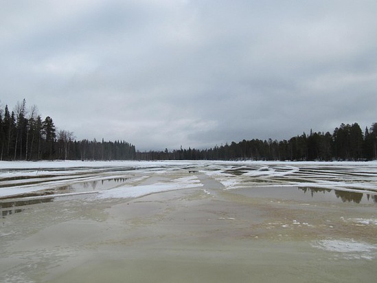 Думали, что вода со льда уйдет. Да, где там, её меньше не стало. От снег, точно сошёл.
