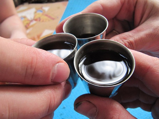 Надев на себя все, что можно и не можно, и нахлобучив на голову шляпы, во втором часу забрали обедать под полог и навес. Так теплее. И мухи не кусают. Кусать то и не кому. От перепада температуры летающие сегодня объявили выходной, что вполне нас порадовало.