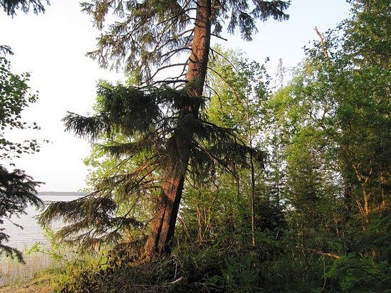 Ладно, разведываем дальше. Вдоль озера не пройти, и приходится углубляться в остров. Вокруг молодой подрост, много поваленных деревьев, когда-то на острове верховой пожар был.