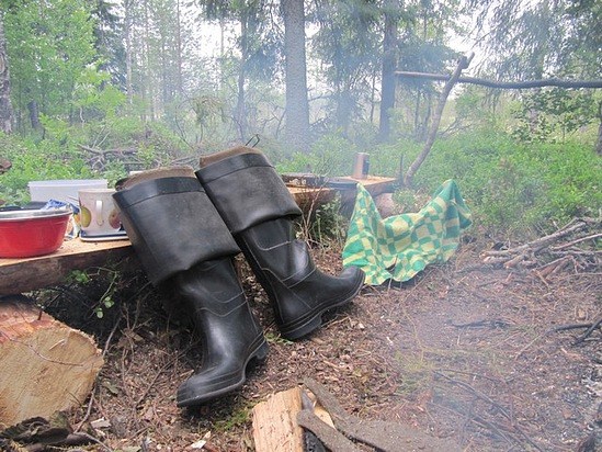 У костерка прилег, пригрело, разморило. Глазки в кучу, да не сплю. Сапоги надо досушить и потом отбой.